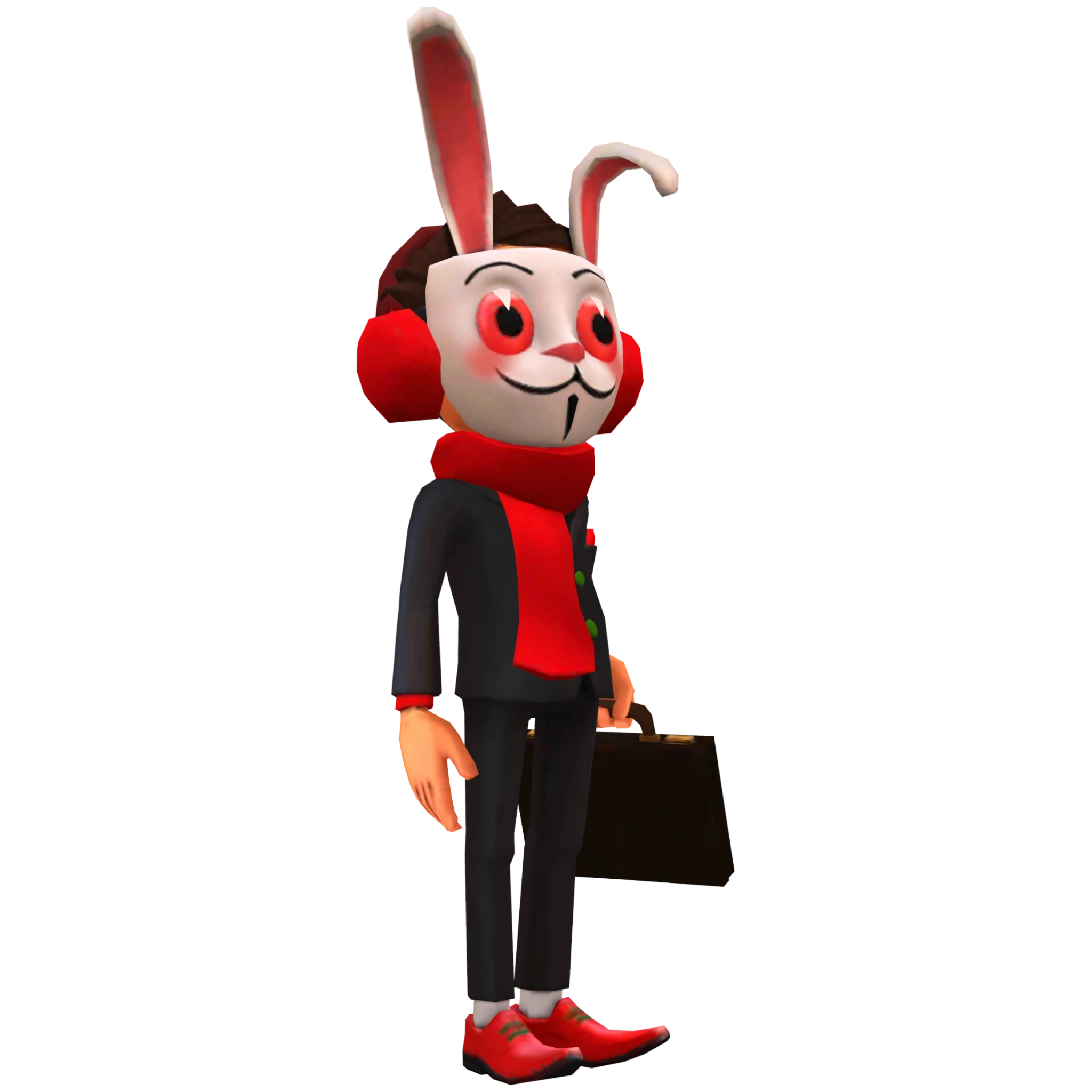 , it's basically Frank but he wears a red suit instead of black, black shoes. He also has a black briefcase which he carries in his left hand while running, similar to Frank and his briefcase, and Fresh and his stereo/boombox.
