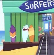 update. - This board uses the same surfing animation as the surfboard hoverboards, most likely because it has a similar shape to them and sharks live in the water.