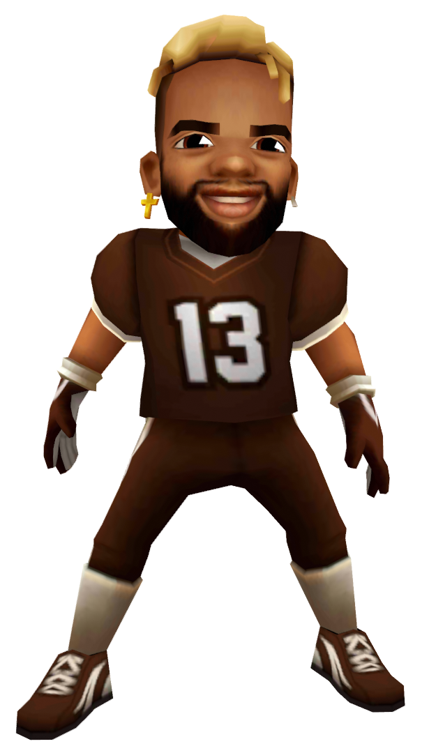 Odell is a 33 years old American man who is a football player from Baton Rouge, Louisiana. In the game, he wears a brown jersey with the number "13" on it. He wears brown gloves and brown sneakers.
