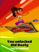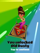 - In the loading screens of Arabia (except the 2017 edition), Tricky (who normally shows off the current exclusive board in her hands) holds Old Dusty in an unseen rolled-up form. This rolled-form does not exist in the files, and was most likely created because the unfurled Old Dusty is too big for her to hold normally.