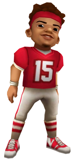 Patrick is a 30 years old American man who is a football player from Tyler, Texas. In the game, he wears a red jersey with the number "15" on it. He wears white and red pants, white wristbands, red sneakers, and a red bandana.