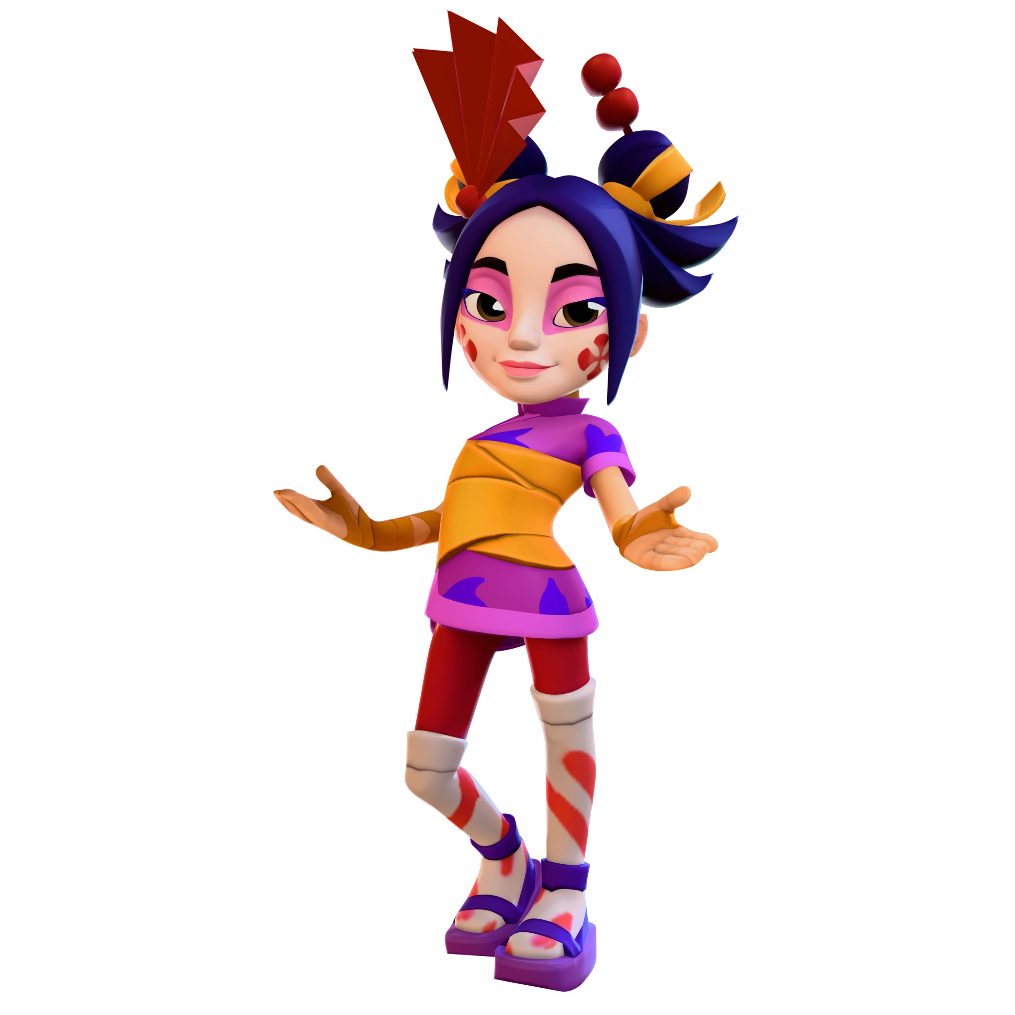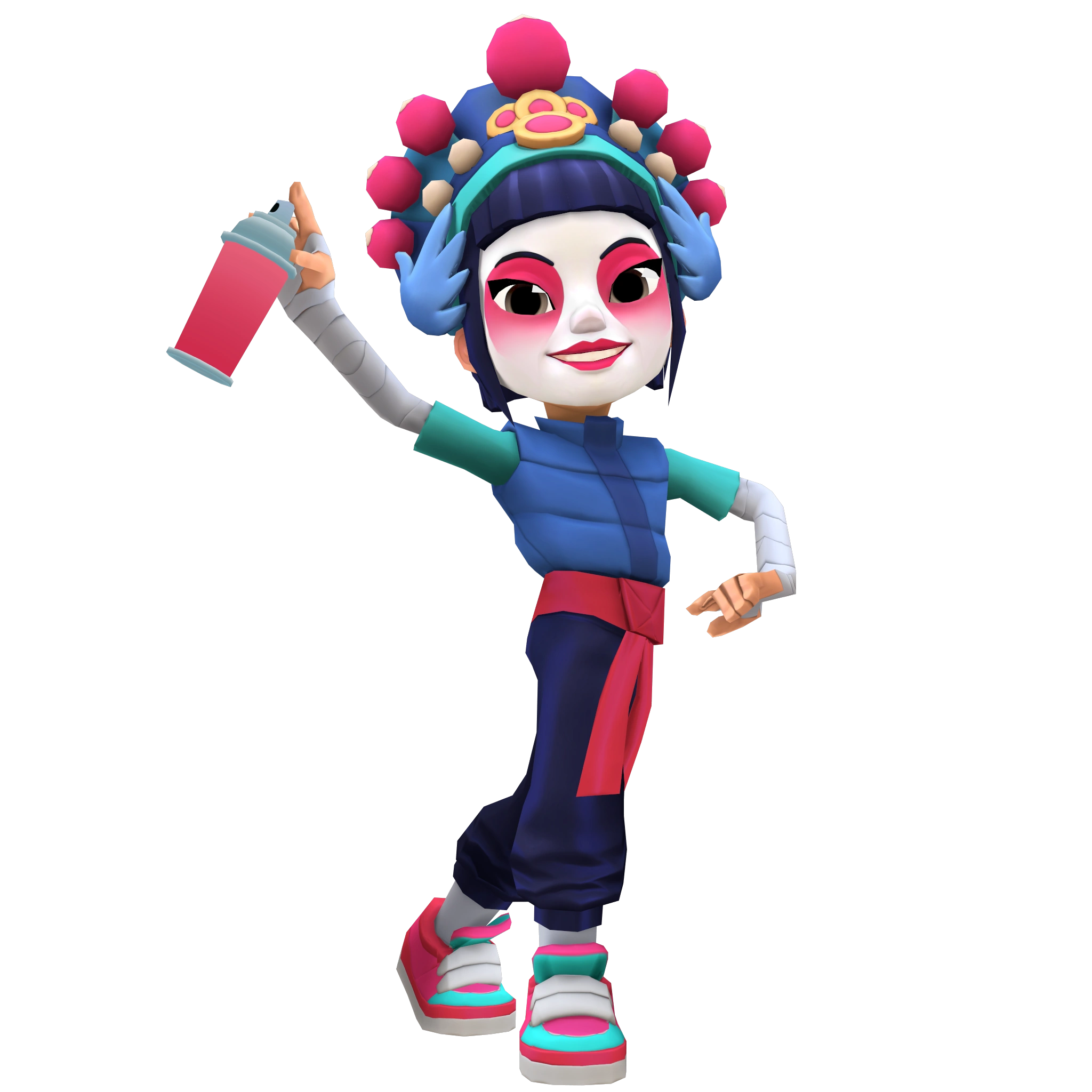 surfer, the second being Snake, and the third being Tang Yuan. - She is the eighth character to have a spray can in their idles after Jake, Miss Maia, Bob The Blob, Charlie, Pink, Dummy, and Super Runner Jake.