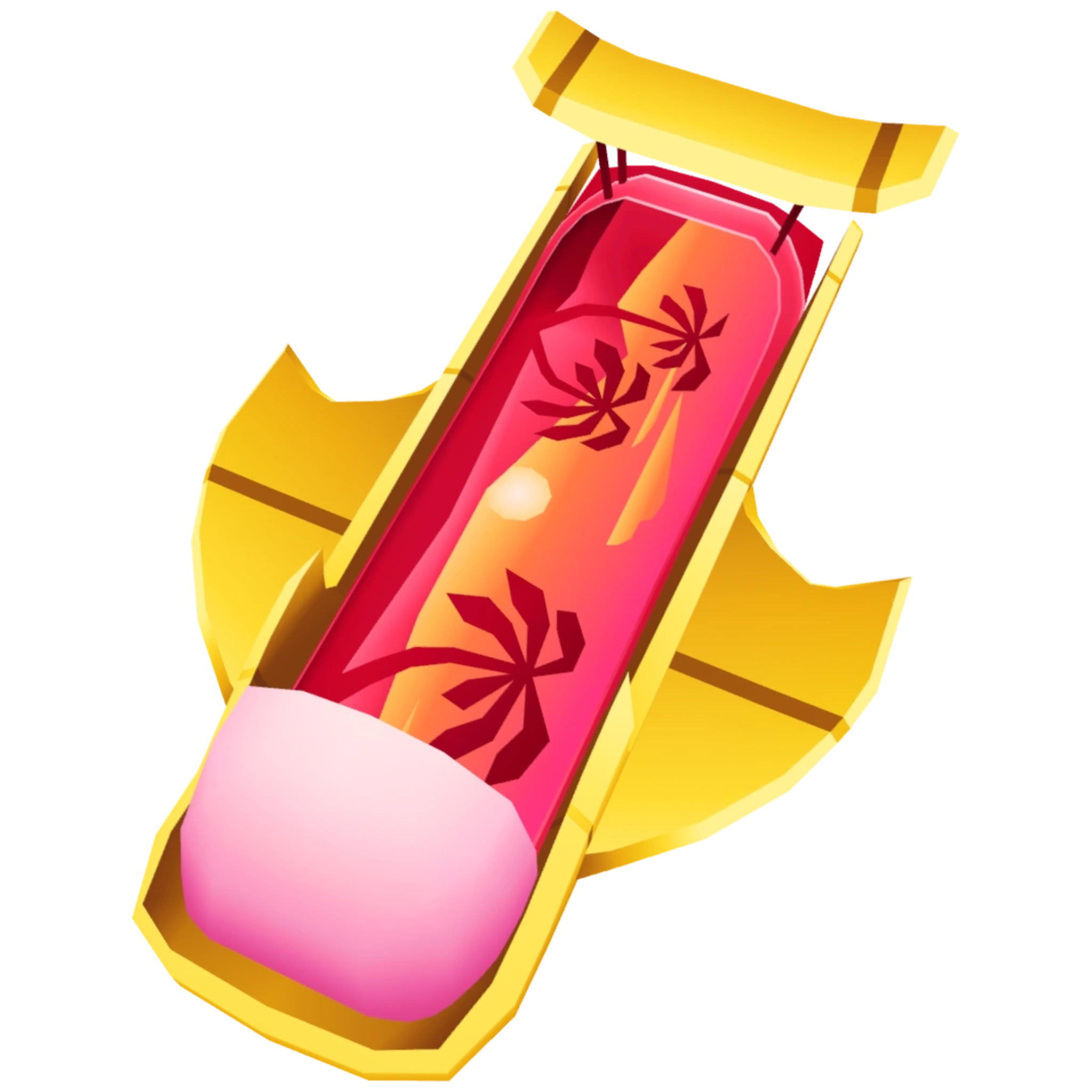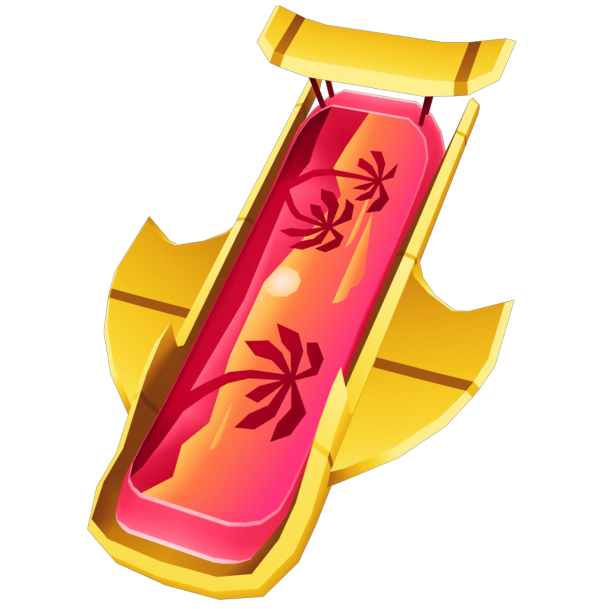 The hoverboard has the appearance of a beach during sunset in a hot pink background. When Pink Trail is equipped, the board gains a pink thing at the back which looks like a bubble. The Smooth Drift upgrade adds a yellow glider to the bottom of the hoverboard, and a spoiler and sharp yellow edges running along the sides of the board.