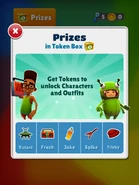 Token Box is a type of Mystery Box that gives the player Character Tokens, making it easier to unlock the 4 default Token Characters and the Jake's Star Outfit. A Token Box can be purchased with