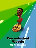 Woody is the thirty-second limited hoverboard in Subway Surfers. Like any other hoverboard, it also protects you from crashing for 30 seconds. When crashed, it needs to recharge for a few seconds before it can be used again. It makes its exclusive appearance in the